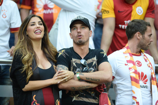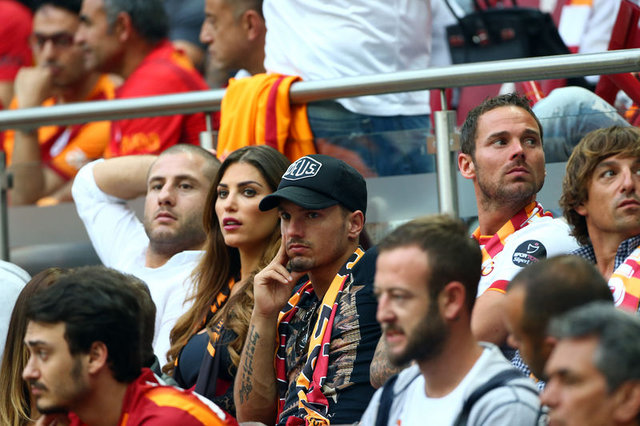 Karşılaşmayı Hakan Balta'nın eşi ile Wesley Sneijder'in eşi Yolhante Sneijder birlikte izledi.