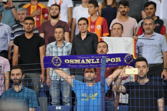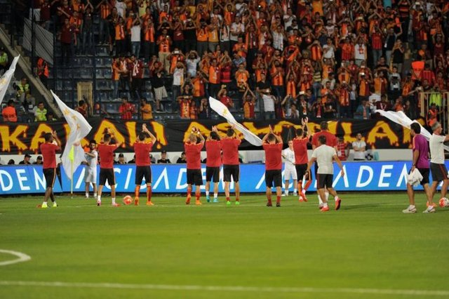 Öte yandan, kupa töreni öncesinde Galatasaray'ın Hollandalı futbolcusu Wesley Sneijder, taraftarların isteği üzerine tribünlere "üçlü" tezahüratı yaptırdı.