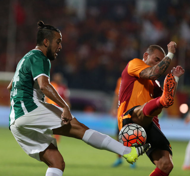 20. dakikada Galatasaray Sneijder'le gole yaklaştı. Hollandalı oyuncu cezasahası ön çizgisi yakınından gelişine sert vurdu, kaleci Mert müthiş bir kurtarışla gol izni vermedi.