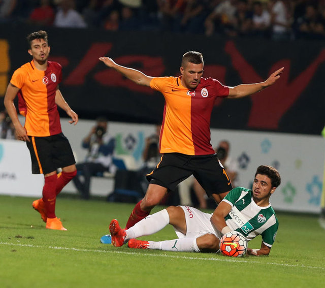 SARI KARTLAR: Dk. 35 Selçuk İnan, Dk. 52 Yasin Öztekin, Dk. 81 Podolski (Galatasaray), Dk. 90+4 Ozan İpek (Bursaspor)