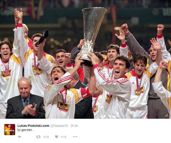 Podolski, Braga-Fenerbahçe maçının bitiminden kısa bir süre sonra Twitter hesabından "İyi geceler..." yazarken, Galatasaray'ın UEFA Kupası'nı kaldırışının fotoğrafını paylaştı.