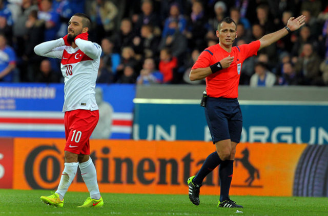 İzlanda-Türkiye: Ömer Toprak'a kırmızı çıkarttı. 3 oyuncuya sarı kart.