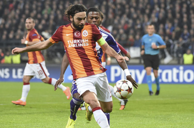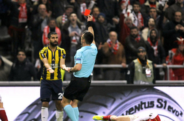 Anderlecht-Galatasaray: Selçuk İnan'a kırmızı çıkarttı. 5 oyuncuya sarı kart.