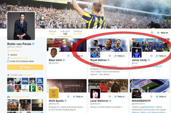 Fenerbahçeli Robin van Persie, Twitter'dan Leicester City'nin yıldızlarını takip edince ortalık karıştı