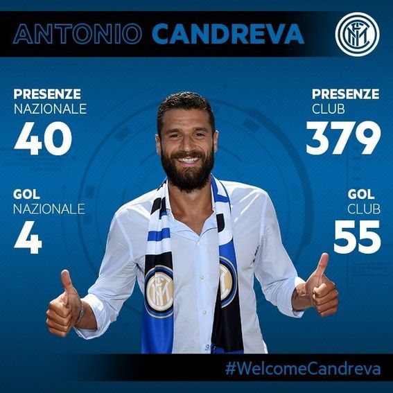 Inter Kulübünden yapılan açıklamada, 29 yaşındaki orta saha oyuncusu Candreva ile 2020 sezon sonuna kadar anlaşmaya varıldığı bildirilirken, futbolcunun bonservis bedeliyle ilgili bir bilgi verilmedi. Ayrıca haberde, İtalyan futbolcu Candreva'nın 87 numaralı formayı giyeceği kaydedildi.