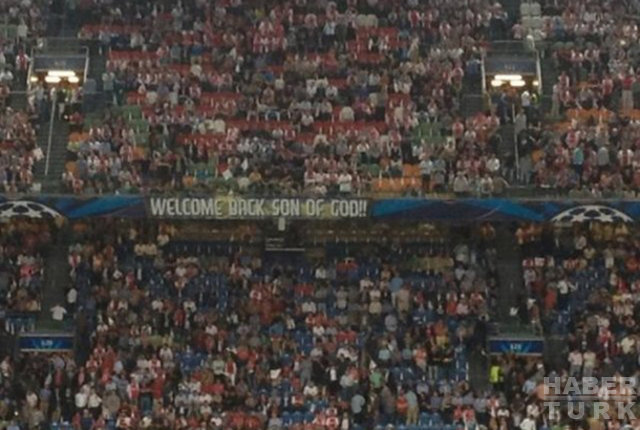 Ibra, Şampiyonlar Ligi'ndeki ilk maçına çıktığı eski kulübü Ajax taraftarıyla tekrar buluşurken, Amsterdam Arena tribünlerinde 'Tekrar Hoşgeldin Tanrı'nın Oğlu' yazılı pankart dikkat çekti.