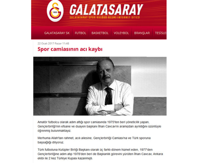GALATASARAY KULÜBÜ: "İlhan Cavcav'a Allah'tan rahmet, acılı ailesine, Gençlerbirliği Camiası'na ve Türk sporuna başsağlığı diliyoruz."