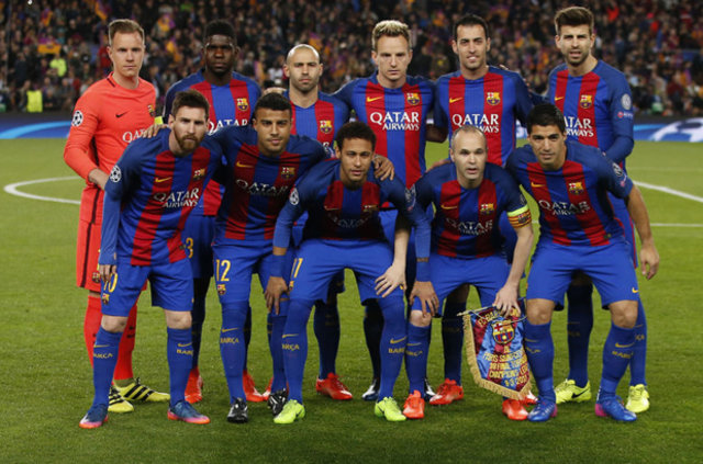 Barcelona sahaya Ter Stegen, Pique, Mascherano, Umtiti, Busquets, Iniesta, Rakitic, Messi, Rafinha, Suarez, Neymar 11'iyle çıktı.