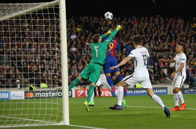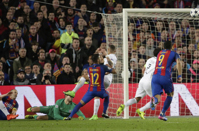 Maçın 3. dakikasında PSG savunmasının uzaklaştıramadığı topa son olarak Luis Suarez kafayı vurdu, Barcelona bu golle 1-0 öne geçti.