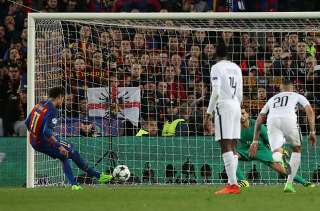 Katalan devinde Luis Suarez, 90+1. dakikada PSG ceza sahası içerisinde yerde kaldı. Hakem Deniz Aytekin penaltı noktasını gösterdi. Topun başına geçen Neymar, penaltıyı gole çevirerek skoru 5-1'e getirdi. Barcelona bu golle çeyrek final için yeniden umutlandı.