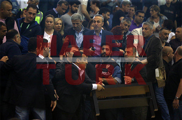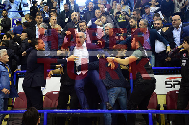 İki takım yöneticileri tekme tokat birbirine girerken, polis ve salonda görevli güvenlik güçlerinin olayları yatıştırması 20 dakika sürdü.