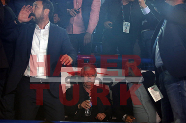 Maçın başlamasına yarım saat kala yöneticilerle Caferağa Salonu’na gelen F.Bahçe Başkanı Aziz Yıldırım, protokol tribünündeki YDÜ Başkanı Işık Eyigüngör’ün yanına gitti.