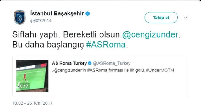 Öte yandan Başakşehir'den de gol atan Cengiz'e tebrik geldi.