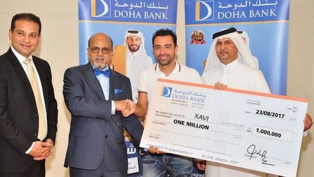 Kariyerini Katar Stars Lig takımlarından Al-Sadd'da sürdüren Xavi Hernandez, Doha'da bir bankanın yaptığı piyango çekilişine katıldı. İspanyol efsane, bankanın yaptığı çekiliş sonucunda 1 milyon Katar riyali (225.000 Euro) ikramiye kazandı.