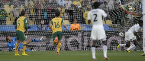 Karşılaşmanın 24. dakikasında ceza sahasındaki karambolde Asamoah'ın şutunu Harry Kewell'ın çizgi üzerinde topu elle kestiğine kanaat getiren hakem, eski Galatasaraylı yıldızı direk kırmızı kartla oyundan attı ve penaltıyı gole çeviren Asamoah Gyan, Gana'ya beraberliği getirdi: 1-1.