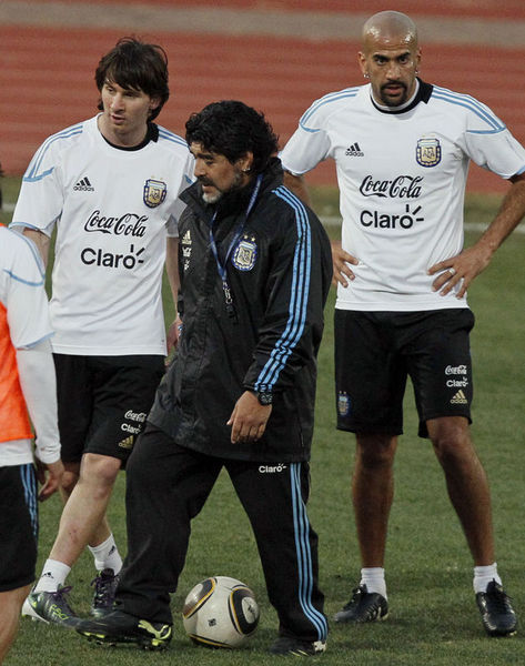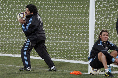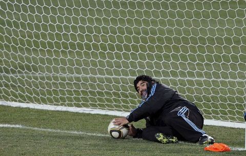 2010 Dünya Kupası çeyrek finalinde Almanya ile karşılaşacak olan Arjantin Milli Takımı'nda Maradona fırtınası dinmek bilmiyor. Efsanevi teknik direktör her idmanda oyuncularının da neşe kaynağı olmaya devam ediyor. Öğrencilerine bir arkadaş ve baba gibi yaklaşan Maradona'nın sempatik tavırları da takımın kenetlenmesindeki en önemli faktörlerin başında gösteriliyor. Son olarak Almanya maçının hazırlıklarında Arjantin efsanesi kaleye geçti ve...