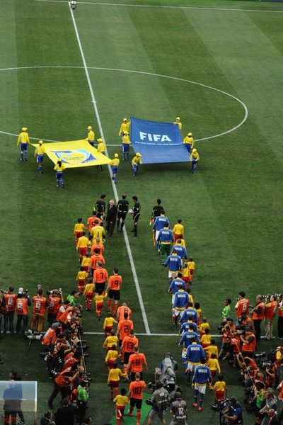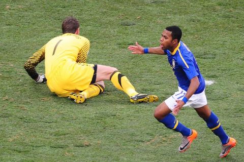 Brezilya ilk çeyrek final maçına fırtına gibi başlarken 8. dakikada golü buldu ancak hakem ofsayt gerekçesiyle golü geçersiz saydı. Bu pozisyondan 2 dakika sonra Sambacılar, Robinho'nun attığı golle karşılaşmada 1-0 öne geçti.