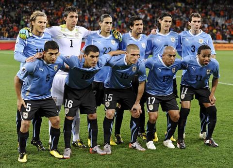 URUGUAY: Fernando Muslera, Diego Godin, Mauricio Victorino, Walter Gargano, Maximiliano Pereira, Martin Caceres, Diego Perez, Alvaro Pereira (Dk. 78 Sebastian Abreu), Egidio Arevalo, Edinson Cavani, Diego Forlan (Dk. 84 Sebastian Fernandez)