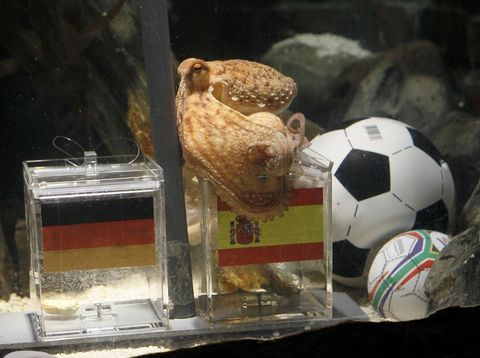 2010 Dünya Kupası boyunca oynanan karşılaşmalarda akvaryumun içine konulan bayraklı kutularda, bugüne kadar her zaman doğru tercihi yapan ahtapot Paul, yarı finaldeki İspanya maçı öncesi Almanya’nın aksine Boğalar’ın kutusunu seçmişti.