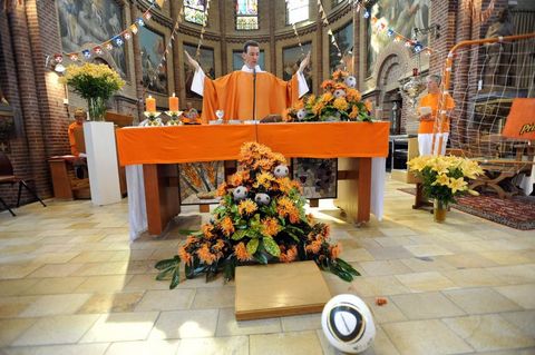 2010 Dünya Kupası finalinde İspanya'ya rakip olan Hollanda'da taraftarlar, takımlarının kupayı kaldırması için ellerinden geleni yapıyor. Öyle ki final maçından önceki pazar ayininde Hollanda'da bir kilisenin Paul Vlaar isimli papazı turuncu renkli bir pelerinle cemaatin karşısına geçti. Kilisedeki diğer rahiplerin de turuncu renkli forma ve flamalarda katıldığı ainde Hollanda'nın şampiyon olması için dua edildi.