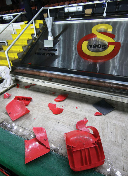 Sarı-kırmızılı taraftarlar, Ali Sami Yen Stadı'ndaki son lig maçında koltukları söktüler.