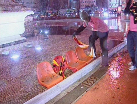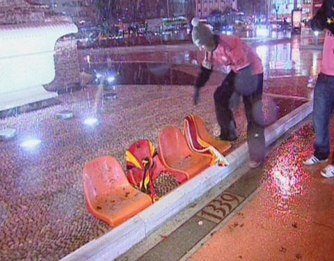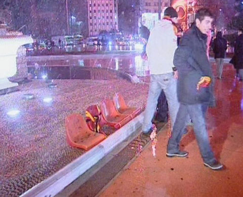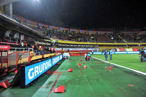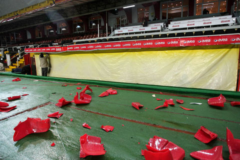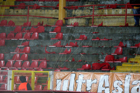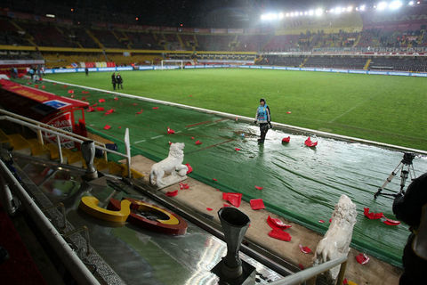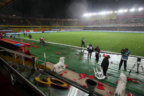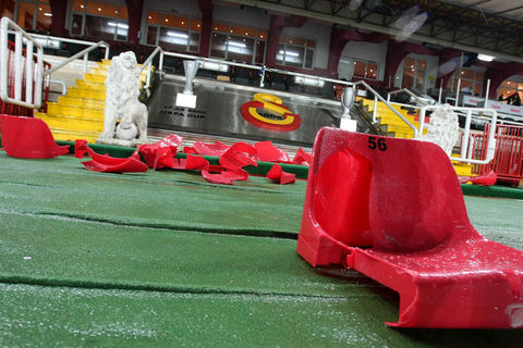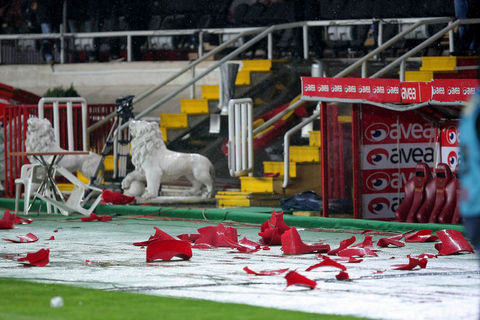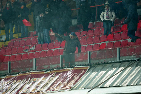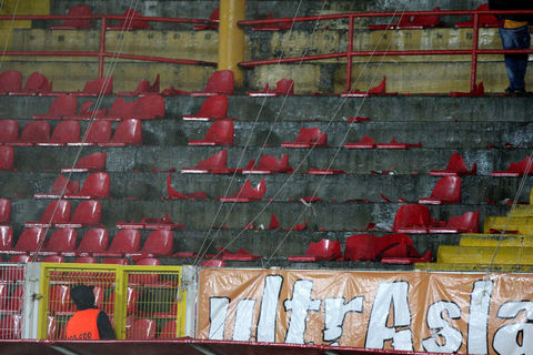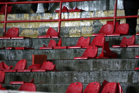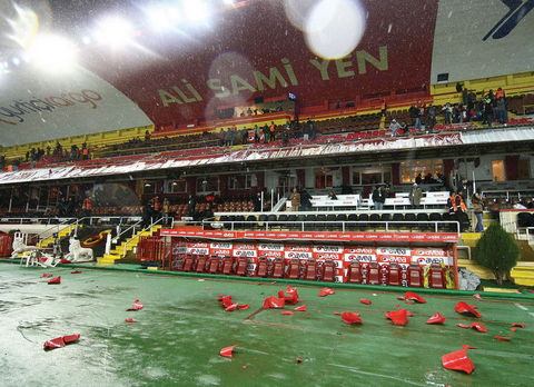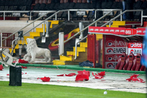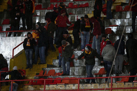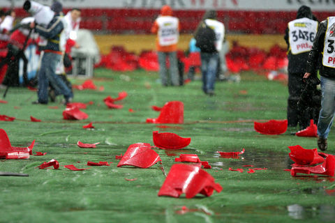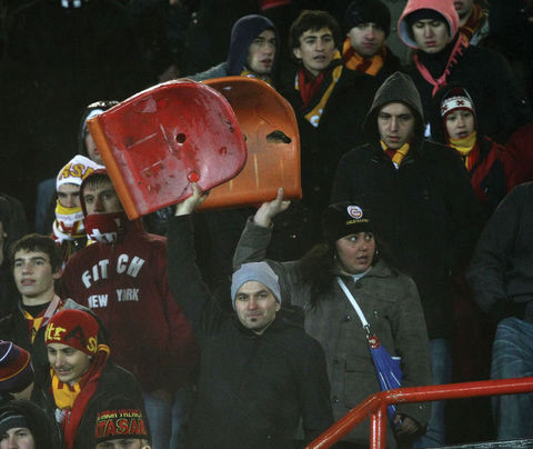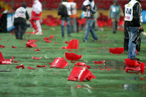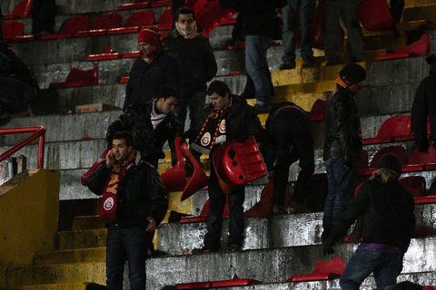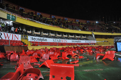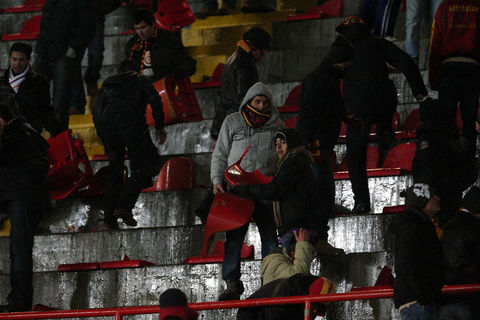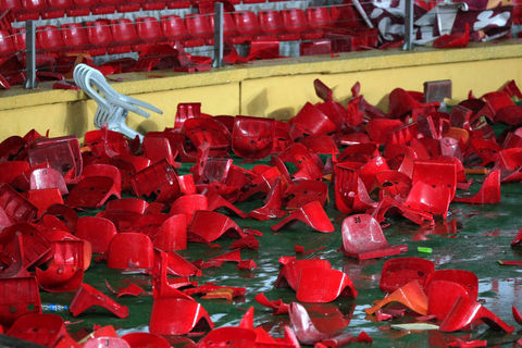 Ayrıca maçın sonlarına doğru ise kötü sonuçlara tepki olarak koltukları söken taraftarlar, bu koltukları tribünlerden aşağıya attılar.