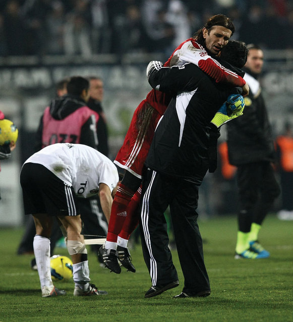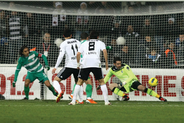 45. dakikada Hakan'ın sağdan ortasında ceza alanı içinde topla buluşan Sestak'ın kafa vuruşunda, kaleci Rüştü dengesini kaybettiği pozisyonda son anda meşin yuvarlağı çizginin üstünde kontrol etti ve mücadelenin ilk yarısını Beşiktaş, 2-1 önde kapadı.