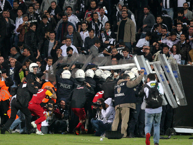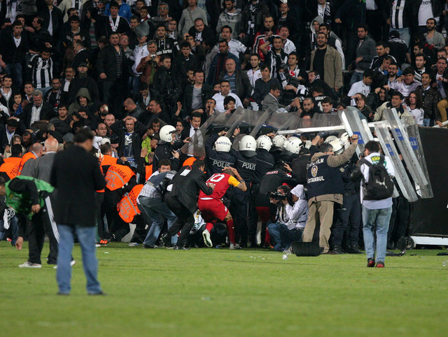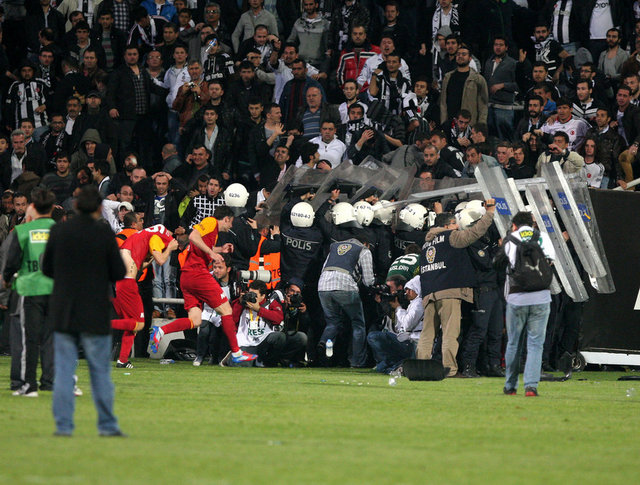 Tribünler pozisyonun ofsayt olduğunu haykırdı. Aynı Beşiktaş taraftarının Quaresma’nın ayağının Selçuk’a geldiği pozisyonda sarı görmesine “Pozisyon kırmızı kart” demesi alkışa değerdi. Ancak sonrasında Fİ-YAPI İnönü Stadı’nda istenmeyen görüntüler vardı. Uzatmalarda İnönü’de adeta ‘muharebeyi’ andıran görüntüler yaşandı. Hele hele Haberturk muhabiri Vahap Hacıoğlu’nun objektifiyle yakaladığı enstantene tüylerimizi diken diken etti...