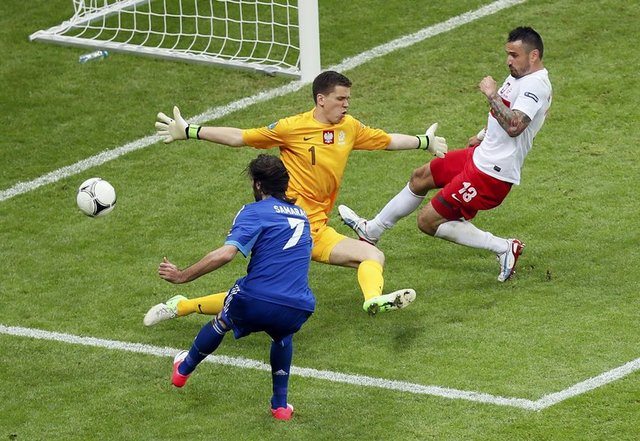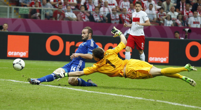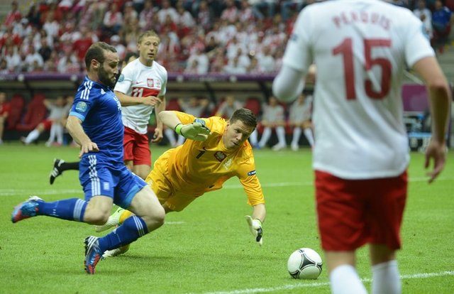 69. dakikada Polonya kalecisi Szczesny, ceza sahasında Salpingidis'i düşürdü ve kırmızı kartla oyundan atıldı. Karagounis'in 70. dakikadaki penaltı vuruşunda Polonya kalecisi Tyton topun ağlara gitmesini ve Yunanistan'ın öne geçmesini engelledi.