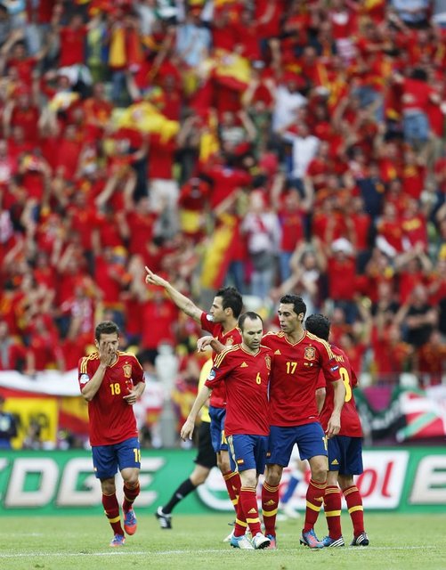 İspanya: Casillas, Pique, Sergio Ramos, Arbeloa, Jordi Alba, Iniesta, Xavi Hernandez, Xabi Alonso, Busquets, Silva (Dk. 64 Jesus Navas), Fabregas (Dk. 74 Torres)