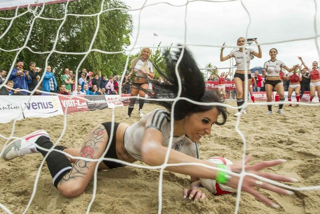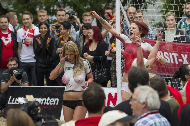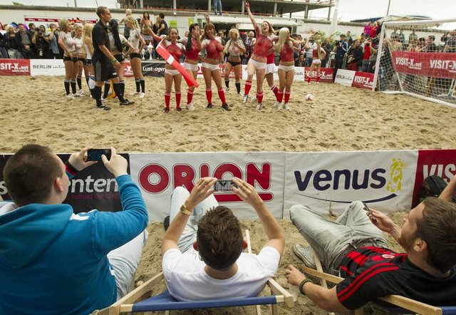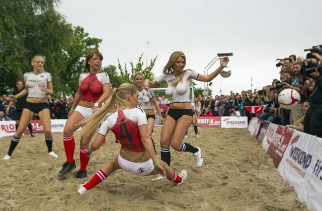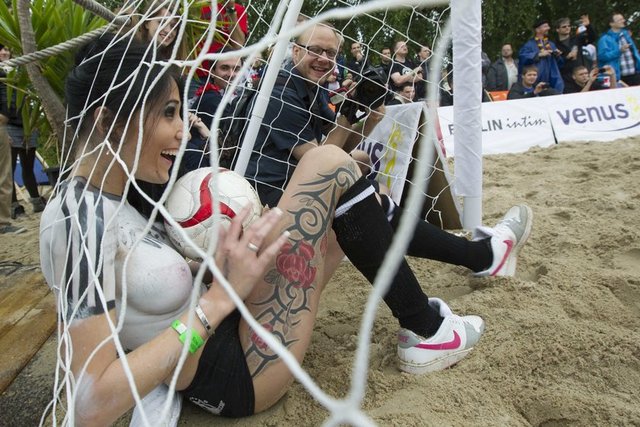 Kum üzerinde 6’şarlık takımlar arasında oynanan karşılaşmaya oyuncular sadece şortları ile çıkarken forma giymek yerine vücutlarını boyadılar.