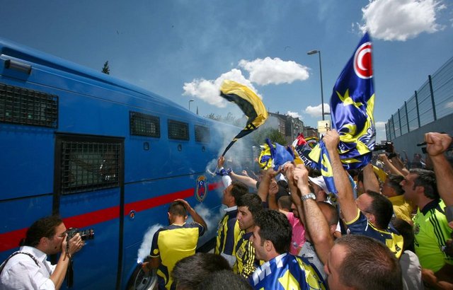 Aziz Yıldırım, cezaevinden aracın tepe penceresinden dışarı çıkarak, taraftarları selamladı. Taraftarlar, bu sırada meşaleler yakıp, Aziz Yıldırım'a dokunmak için adeta birbirleriyle yarıştı. Fenerbahçeliler, tezahüratlarla başkanlarını desteklerken, Aziz Yıldırım da el sallayarak taraftarlara karşılık verdi. Yıldırım, ayrıca kendisine verilen atkı, forma ve Türk Bayrağı'nı boynuna doladı.
