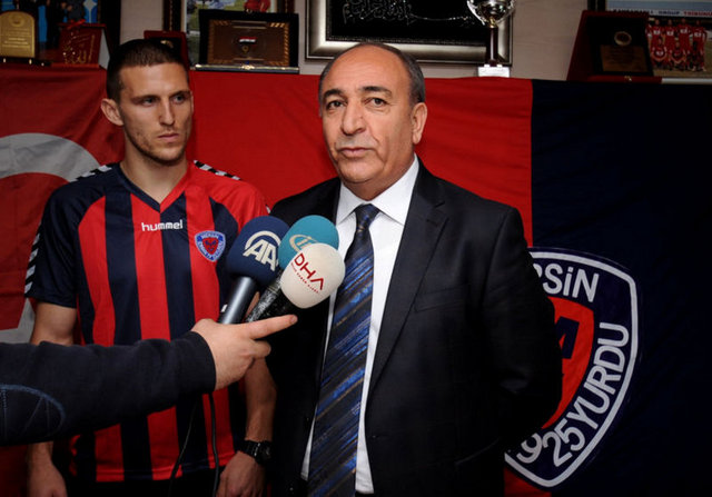 Kulüp Başkanı Ali Kahramanlı'nın işyerinde düzenlenen törende, Kahramanlı 24 yaşındaki stopere Mersin İdman Yurdu formasını ve atkısını hediye etti.