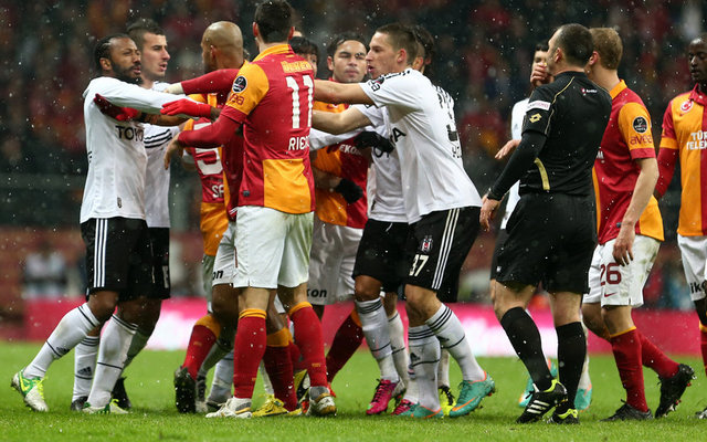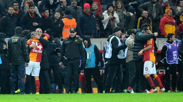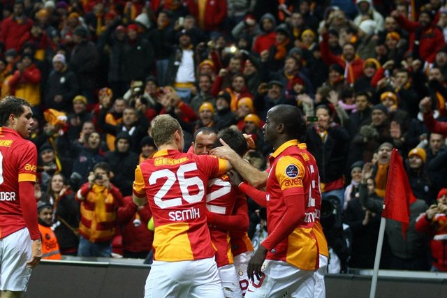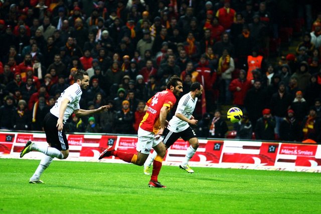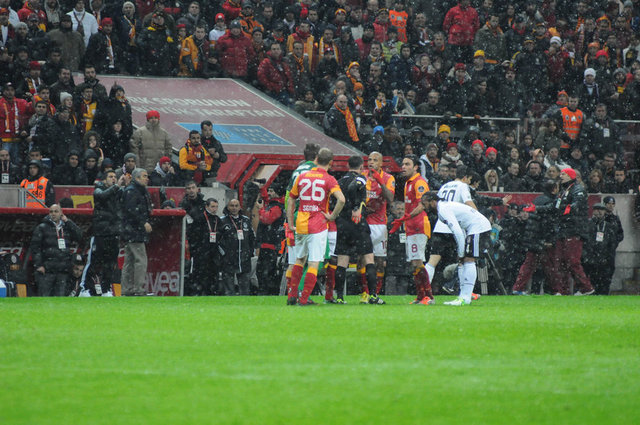 Beşiktaş derbisinde sarı-kırmızılı taraftarlar, takımlarınız yalnız bırakmadılar. Maç öncesi Florya Metin Oktay Tesisleri'nden coşkulu bir şekilde takımlarını uğurlayan taraftarlar, Türk Telekom Arena'yı misafir takım taraftarları için ayrılan bölüm de dahil olmak üzere önemli ölçüde doldurdular. Isınmak için sahaya çıkan Galatasaray takımına tezahüratlarla destek veren taraftarlar, tüm futbolcuları tek tek tribüne çağırdılar. Yeni transfer Wesley Sneijder de maç öncesi taraftarların çağrısıyla tribüne giderek ''Üçlü'' çektirdi. Taraftarların, Beşiktaş kalesinin olduğu bölüme konfeti atmaları nedeniyle de maç kısa bir süre gecikmeyle başladı.