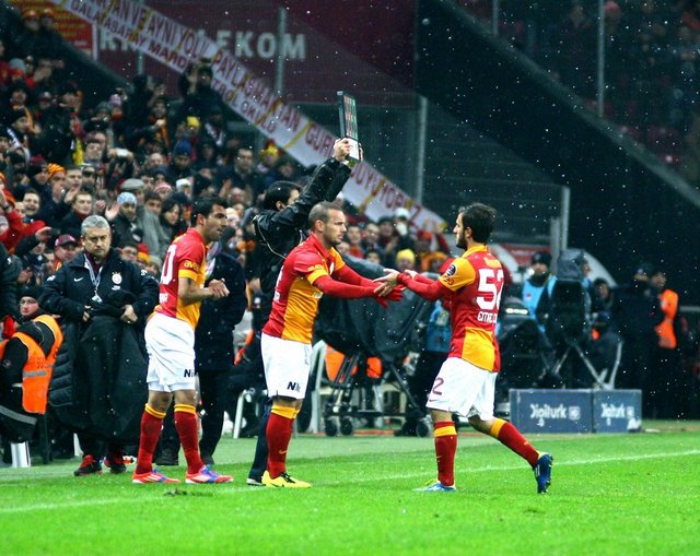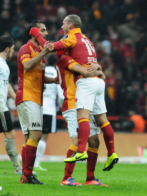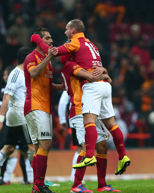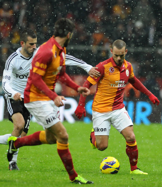 Galatasaray'ın hafta içi kadrosuna kattığı Hollandalı yıldız Wesley Sneijder, Beşiktaş derbisinin yedekleri arasında yer aldı. İmza töreninde, kendisini hazır hissettiğini ve Beşiktaş maçında forma giymek istediğini aktaran Sneijder, Fatih Terim'in görev vermesi halinde sarı-kırmızılı takımdaki ilk maçına yedekler arasından dahil olabilecek. Öte yandan, sarı-kırmızılı taraftarların Sneijder için açtıkları dev pankartta, İngilizce olarak, ''Burası Galatasaray Wesley! Efsane olmak için kalbini koymalısın'' yazdığı görüldü.