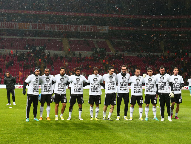Beşiktaşlı futbolcular, hafta içinde ciddi bir sakatlık geçiren takım arkadaşları Uğur Boral'ı derbi maç öncesi unutmadı. Siyah-beyazlı futbolcular, sakatlığı nedeniyle sezonu kapatan Uğur Boral'ın resminin bulunduğu ve üzerinde ''Geçmiş olsun Uğur Boral'' yazılı tişörtler giyerek ısınmak için sahaya çıktı. Beşiktaş'ın İskoç kalecesi Allan McGregor, siyah-beyazlı formayla ilk kez Galatasaray derbisine çıktı. McGregor, ligin ilk yarısında BJK İnönü Stadı'nda oynanan derbide yedek soyunmuştu.