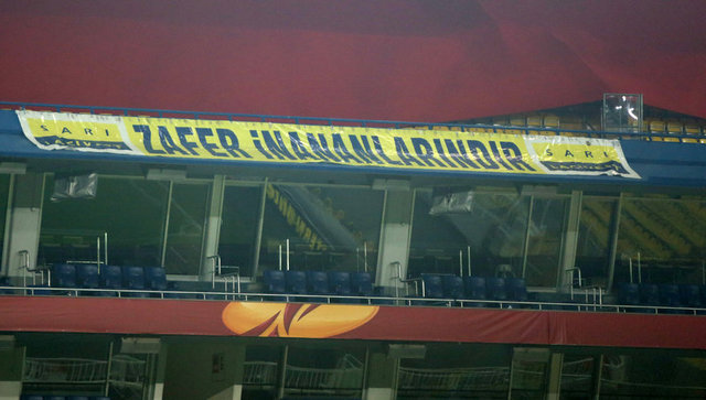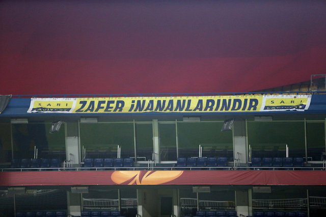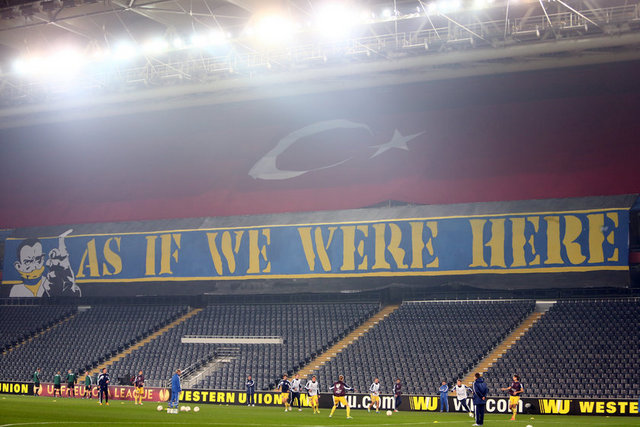 Maçta taraftar olmadığı için boş kalan tribünlere, bayraklar serildi. Maraton üst bölüme, tribünü tamamen kapatan Türk Bayrağı konuldu. Bu tribüne asılan pankartta taraftarların futbolculara mesajı olarak, İngilizce ifadelerle ''As if we were here'' (Sanki biz buradayız) yazısı yer aldı. Diğer tribünlerde de sarı-lacivertli bayrakların yanı sıra, ''Yenilsen de yensen de taraftarın seninle'', ''Senin olduğun her yerdeyiz'', ''Hayallerimizdeki gibi oynayın gerisini bize bırakın'' şeklinde mesajların yer aldığı pankartlar bulundu.