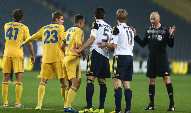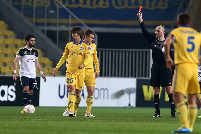 SARI KARTLAR: Dk. 9 Volodko, Dk. 45 Gorbunov, Dk. 47 Bordachev, Dk. 64 Olekhnovich (BATE Borisov), Dk. 25 Egemen Korkmaz, Dk. 57 Salih Uçan, Dk. 76 Yobo, Dk. 90 Selçuk Şahin, Dk. 90 3 Volkan Demirel (Fenerbahçe)
