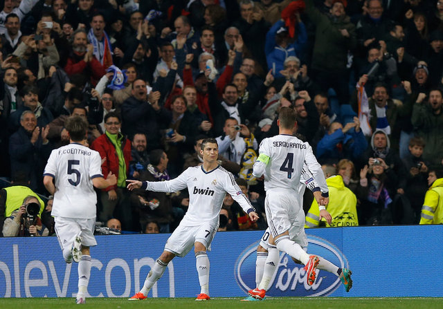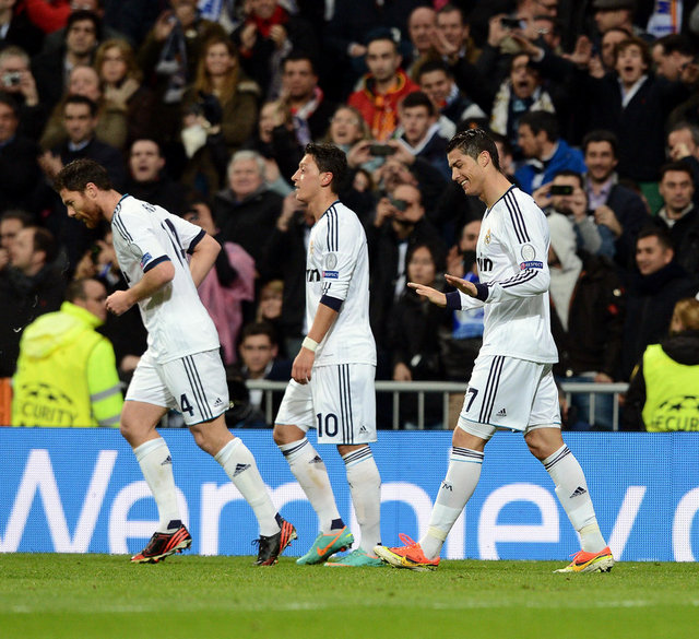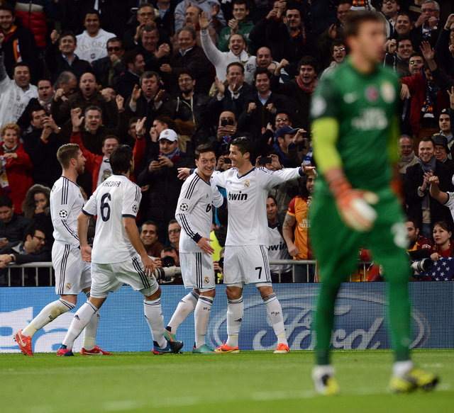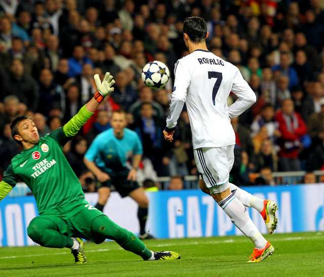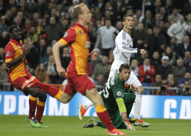 9. dakikada Real Madrid, Galatasaray karşısında 1-0 öne geçti. Mesut Özil'in ara pasında Galatasaray savunmasının arkasına sarkan Cristiano Ronaldo, ceza sahası içinde aşırtma bir vuruşla topu ağlara gönderdi: 1-0.