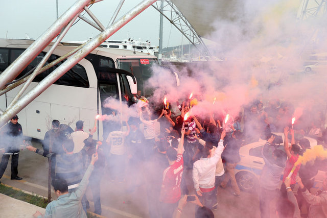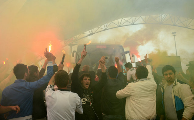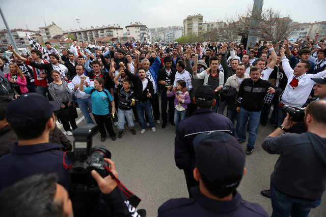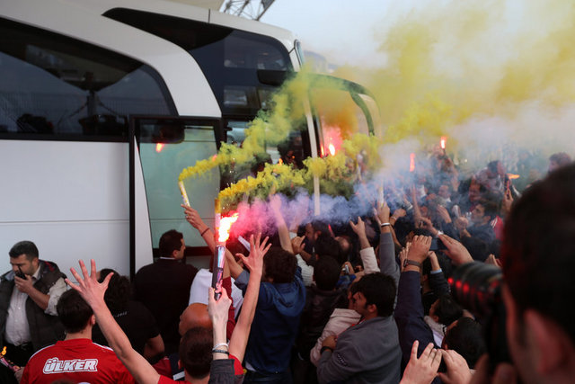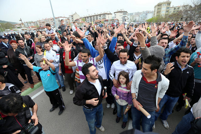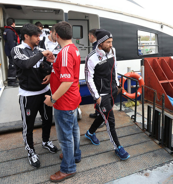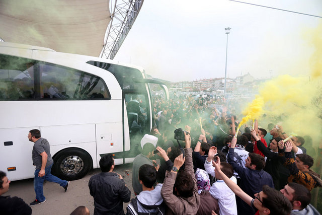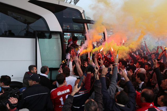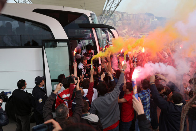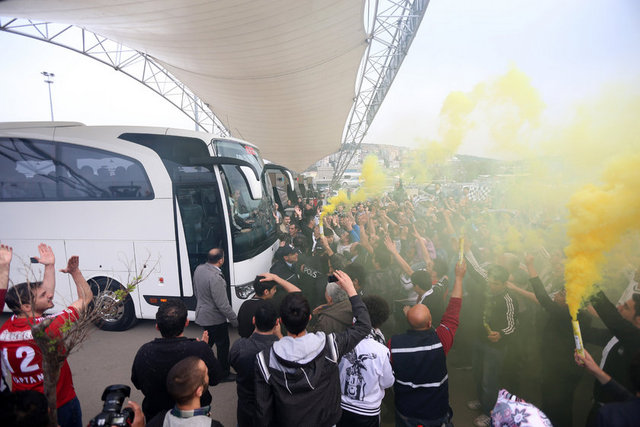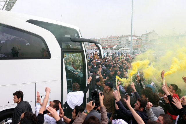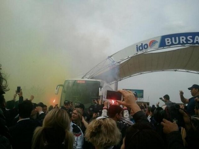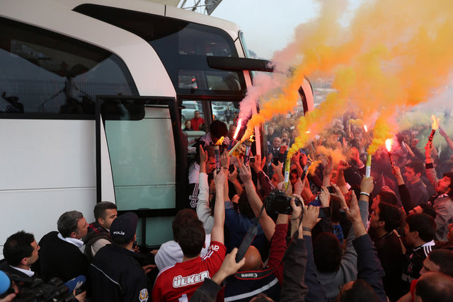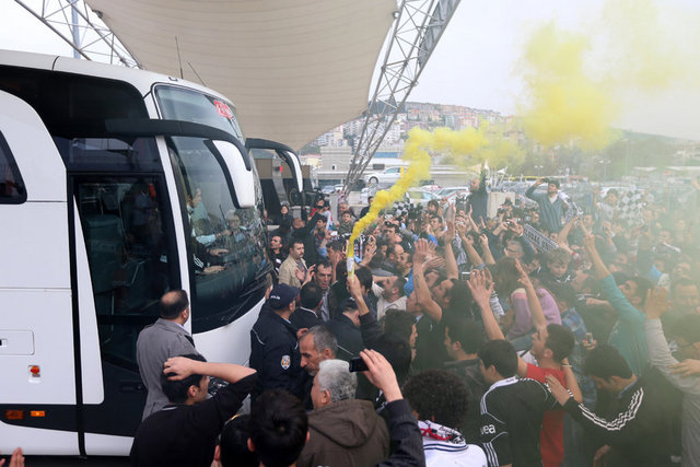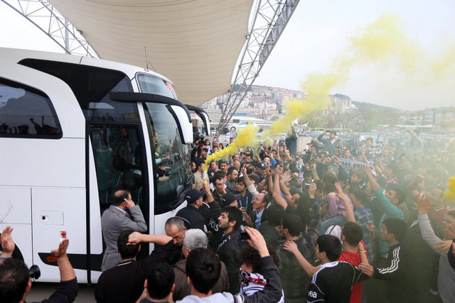 Beşiktaşlı futbolcuların bulunduğu otobüsün önü, iskele çıkışında siyah-beyazlı taraftarlarca kesildi. Meşaleler yakan ve takımları lehine tezahürat yapan taraftarlar, kaptan İbrahim Toraman'a çiçek verdi.