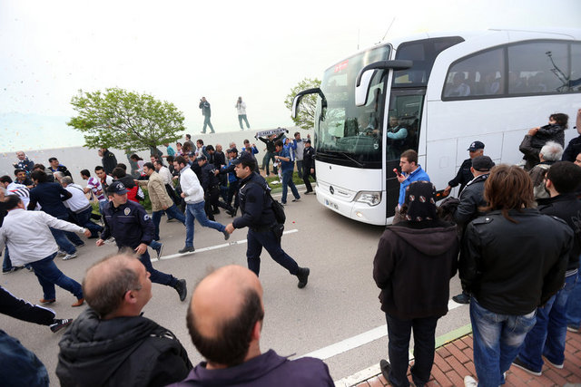 Otobüs, iskeleden güçlükle çıktıktan sonra takımın konaklayacağı Uludağ Üniversitesi (UÜ) Görükle Yerleşkesi'ndeki Holiday Inn Otel'e hareket etti. Yönetici, teknik heyet ve futbolcuların bulunduğu minibüs ile otobüs, polisin geniş güvenlik önlemi altında otele ulaştırıldı. Güzergahta herhangi bir olumsuzluğa karşı jandarma ve polis ekiplerinin bekletildiği görüldü.