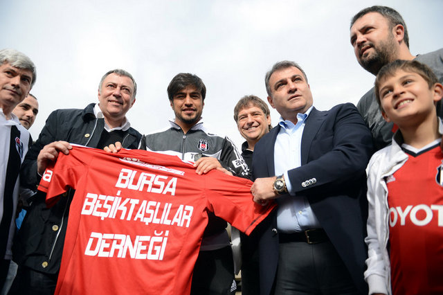 Kafile, yaklaşık 20 dakika süren yolculuğun ardından otele geldi. Takım, burada da yaklaşık 30 taraftar tarafından karşılandı. Beşiktaşlı futbolcular, otele, konaklama giderlerini karşılayan Bursa Beşiktaşlılar Derneğinin temin ettiği siyah ve beyaz balonlardan yapılan tünelden geçerek girdi. Bu sırada dernek üyeleri, balonları havaya bıraktı. Beşiktaş ile Bursaspor, Bursa Atatürk Stadı'nda, yarın saat 20.00'de başlayacak maçta karşılaşacak.