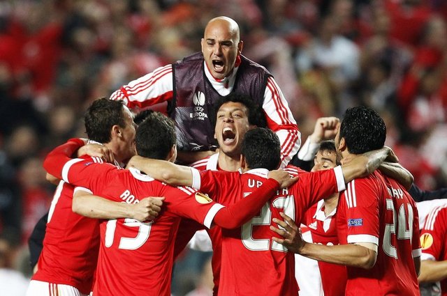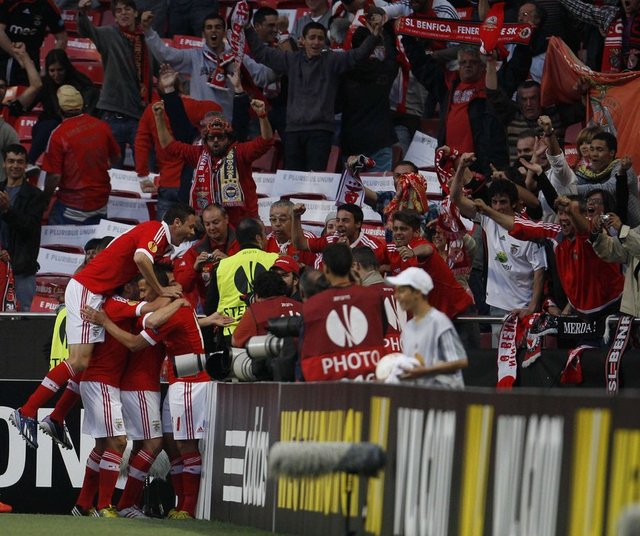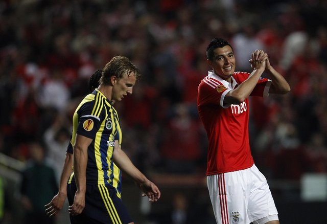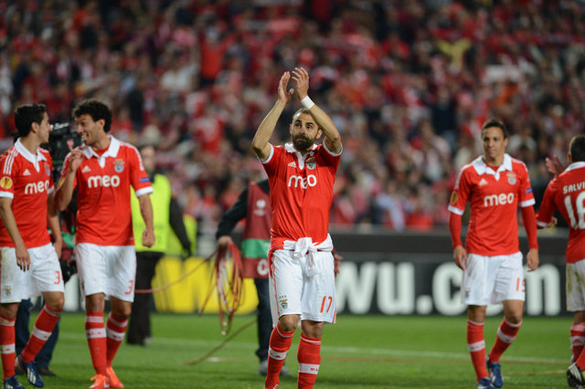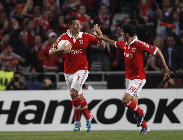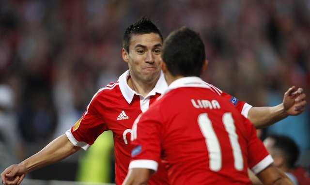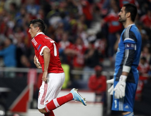 Benfica: Artur, Maxi Pereira, Luisao, Garay, Andre Almeida, Gaitan (Dk. 90 2 Jardel), Matic, Perez, Salvio, Oscar Cardozo (Dk. 87 Urreta), Lima