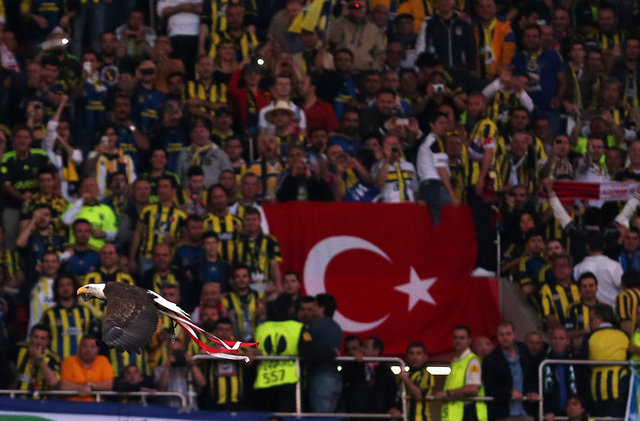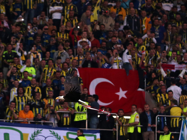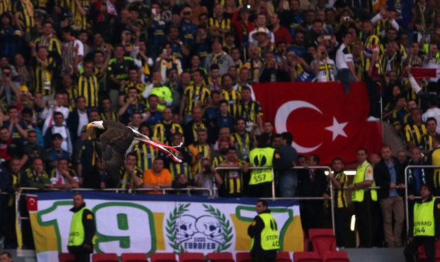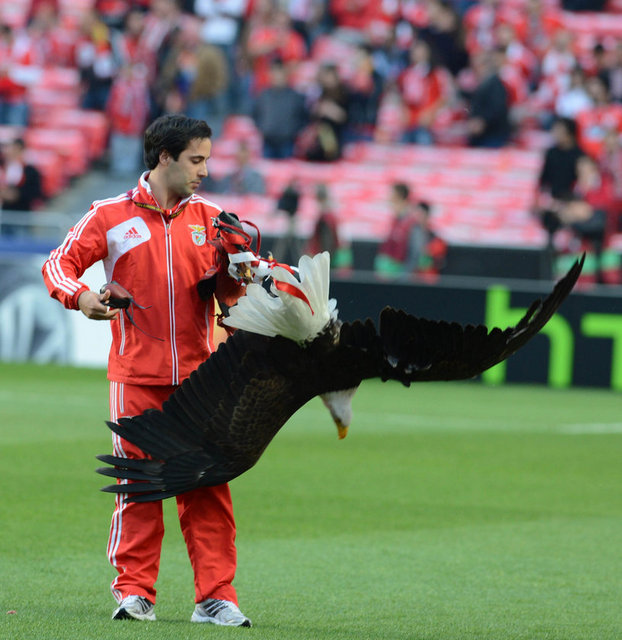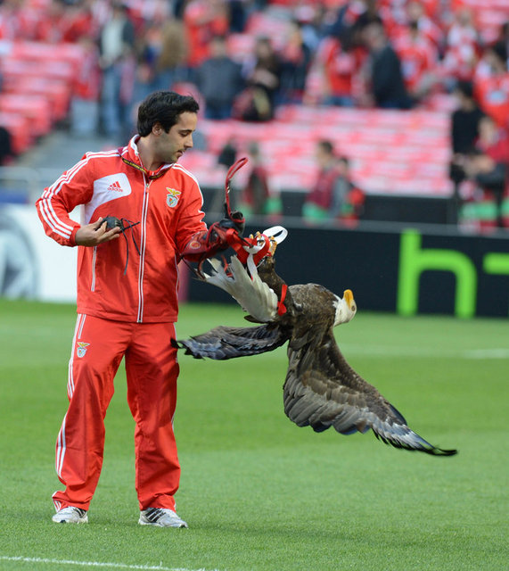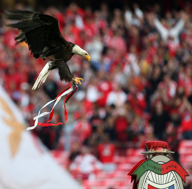 Bu arada Benfica'nın sembolü olan kartal, karşılaşmanın başlamasından kısa süre önce tribünden uçuruldu. Bir süre tribünlerin üzerinde dolaşarak taraftarları coşturan kartal, saha ortasına hazırlanan Benfica logolu platforma kondu. Kartal, daha sonra bakıcısı tarafından saha dışına çıkarıldı.