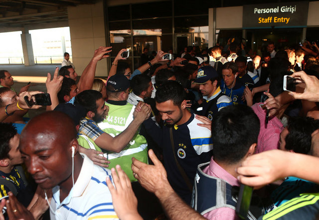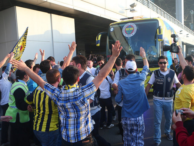 Fenerbahçe Kulübü Başkanı Aziz Yıldırım'ın da aralarında bulunduğu kafileyi Sabiha Gökçen Havalimanı'nda bir grup taraftar sevgi gösterileriyle karşıladı.