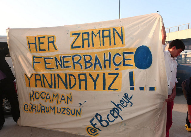 Fenerbahçeli taraftarlar, kulüp başkanı Yıldırım ve teknik direktör Aykut Kocaman'a da destek verdi.