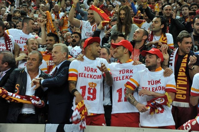 Galatasaray'ın Türk Telekom Arena'daki şampiyonluk kutlamasında yine Fenerbahçelileri kızdıran o şarkı çalındı.