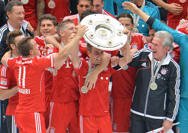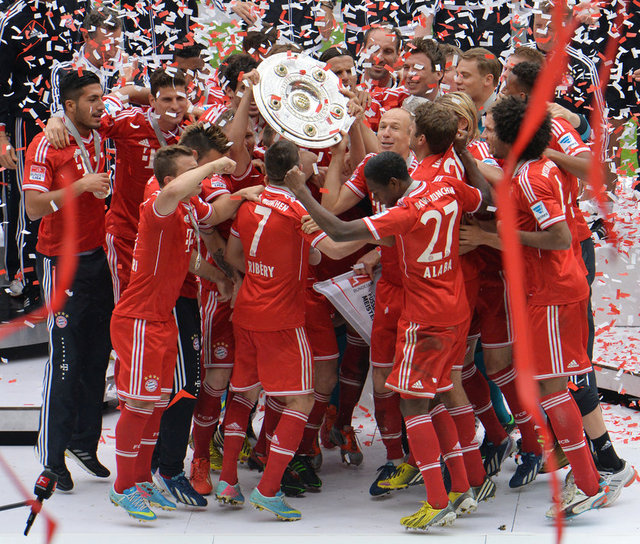 Bayern Münih-FC Augsburg karşılaşmasından sonra düzenlenen törende Almanya Futbol Ligi Başkanı Reinhard Rauball, şampiyonluk kupasını Bayern Münih'in kaptanı Phlipp Lahm'a verdi.Büyük sevinç yaşayan futbolcular daha sonra statta şampiyonluk turu atarak seyircilerle şampiyonluk sevincini paylaştı. Şampiyonluğunu bu sezon 28. hafta sonunda ilan eden Bayern Münih, Bundesliga'da 23'üncü şampiyonluğuna ulaştı. Bayern Münih, bu hafta FC Augsburg'u 3-0 yenerek puanını 88'e yükseltti.