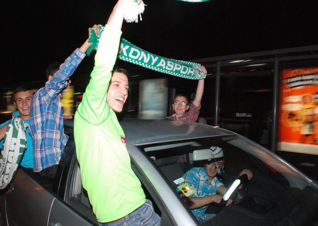 Torku Konyaspor'un, Eskişehir'de Manisaspor'u yenerek Spor Toto Süper Lig'e yükselmesi dolayısıyla Konya'da kutlamalar yapıldı
