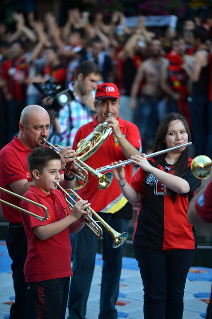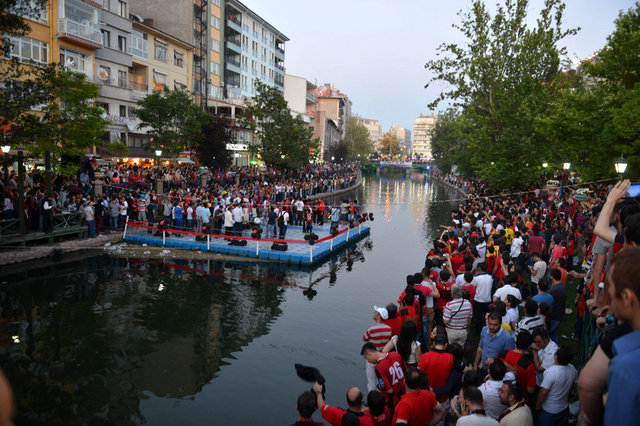 Porsuk Çayı üzerine kurulan platformdaki kutlamalar öncesinde bir konuşma yapan Eskişehirspor Kulübü Başkanı Mesut Hoşcan, kırmızı-siyahlı taraftarlarla Eskişehirspor'u daha iyi yerlere getireceklerini kaydetti.